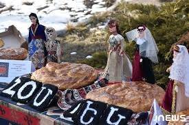 Հետաքրքրական է Միջինքը կտրելու ծէսը․ երեկոյեան տան աւագը բաղարջ հացը կը դնէր տան ամէնէն փոքր անդամին մէջքին եւ կը կտրէր։ Ապա հաւասար բաժին կը հանուէր ինչպէս տան բոլոր անդամներուն, այնպէս ալ ընտանի անասուններուն եւ հողին։ Որուն որ բաժինէն երկաթեայ դրամը դուրս գար, այդ տարուան ընթացքին անոր յաջողութիւնը ապահով կը համարուէր։